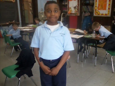 Mrs. Lynch and Mr. Downes correcting workbooks during 3rd grade science class